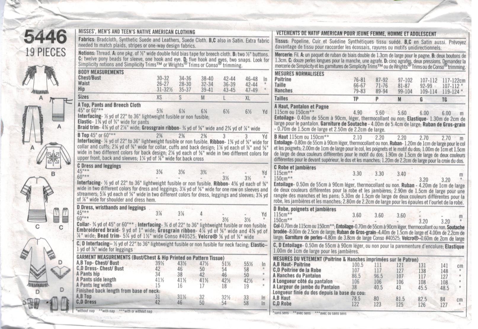 Simplicity Pattern 5446 Native American Designer Designer Costumes For Men And Women Sizes Xs Xl Sewing Pattern Heaven